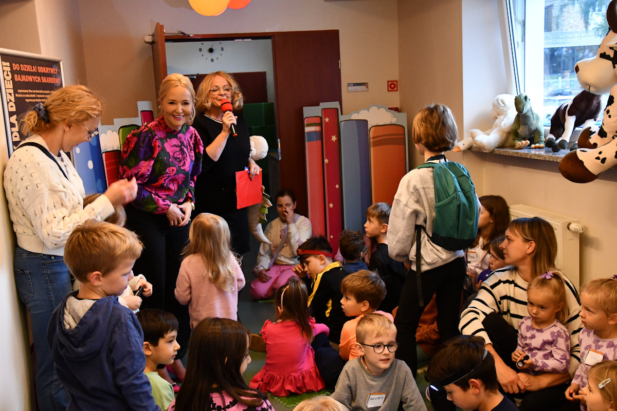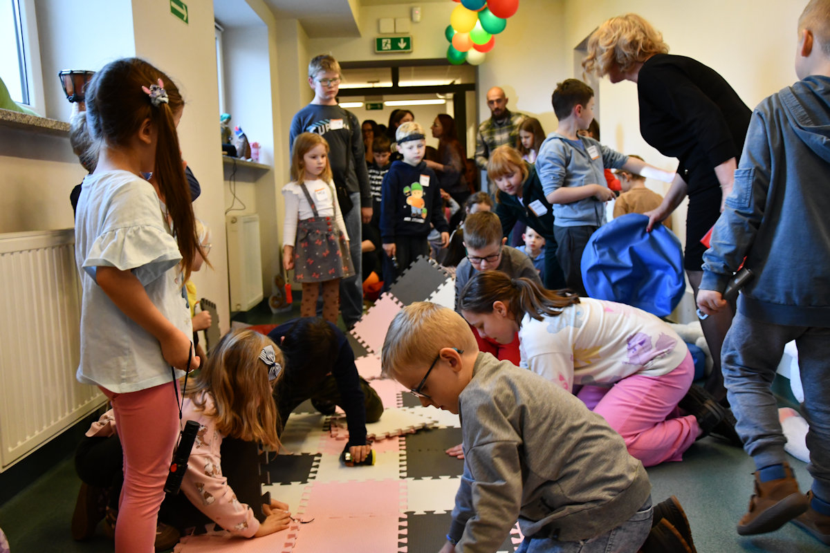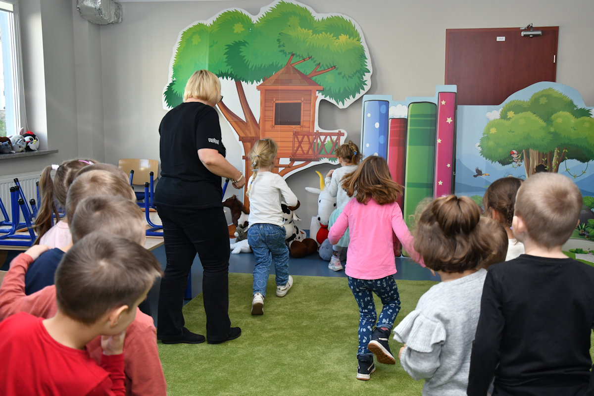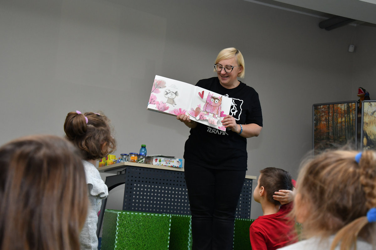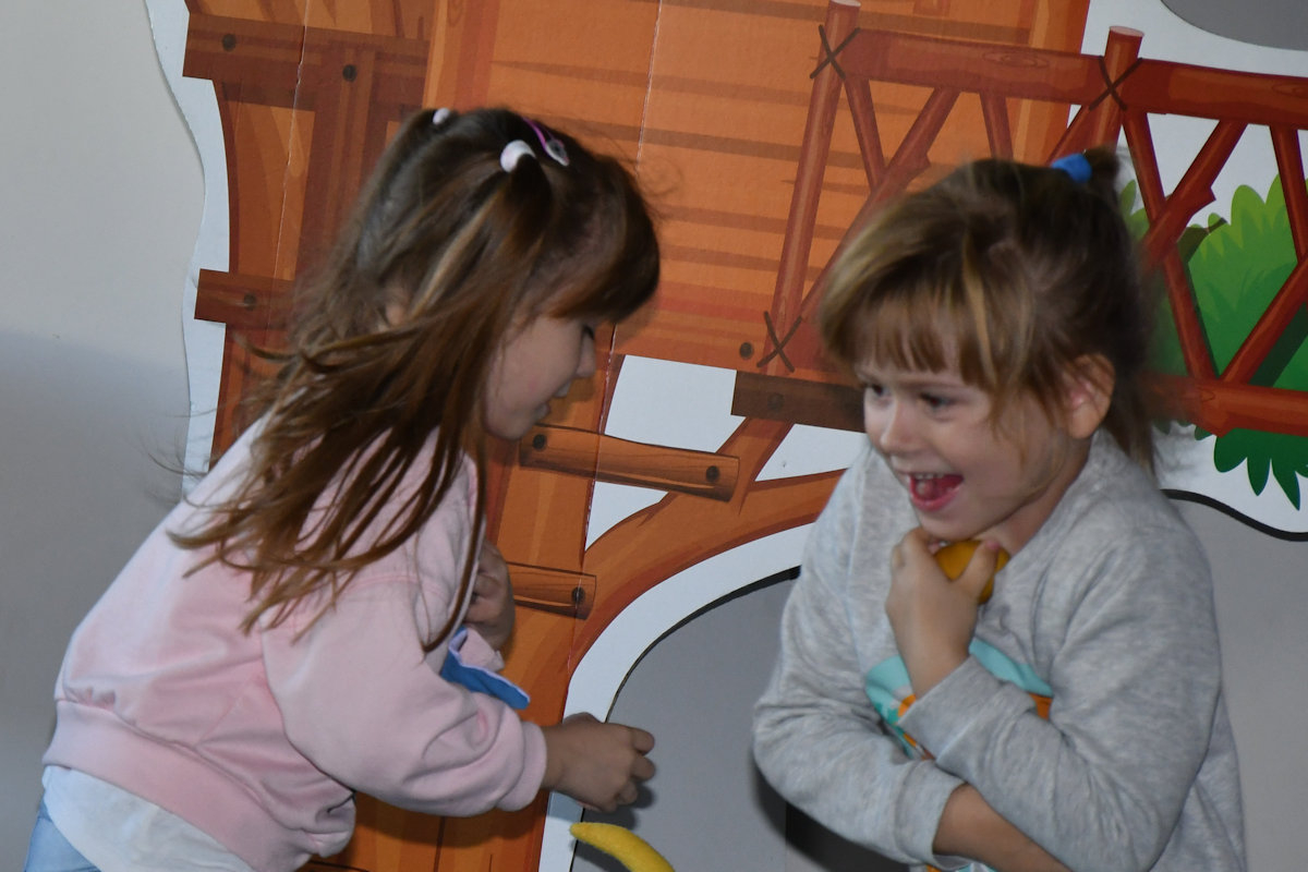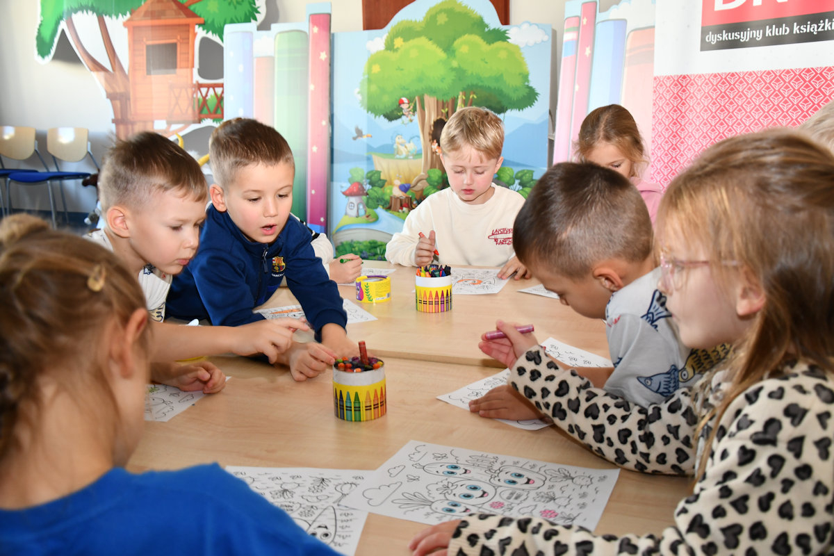 23 października odbyło się kolejne spotkanie z cyklu Kłębek Uczuć. Uczestniczyły w nim dzieci z Przedszkola Niepublicznego Baja Patataja. Zajęcia rozpoczęły się serią ćwiczeń oddechowych z książki autorstwa Christophera Willarda Alfabetoddechy z cyklu –„ABC uważnego oddychania” (Wydawnictwo CoJaNaTo). Następnie dzieci oglądały plansze poglądowe z różnymi rodzajami emocji i uczyły się je nazywać. Po krótkiej chwili relaksującego odpoczynku przedszkolaki wysłuchały z zainteresowaniem książki Kolorowy Potwór Anny LLenas (Wydawnictwa Mamania), po czym przystąpiły do rozwiazywania zagadek związanych z emocjami. Starały się uszeregować emocje za pomocą odpowiednich kolorowych pasków. Na koniec zagrały w ciekawą grę Kto pierwszy ten lepszy potworna wyszukiwanka (Wydawnictwo Fabryka Kart Trefl-Kraków) oraz bawiły się przy piosence Hyc, tup, klap w wykonaniu zespołu Śpiewające Brzdące.