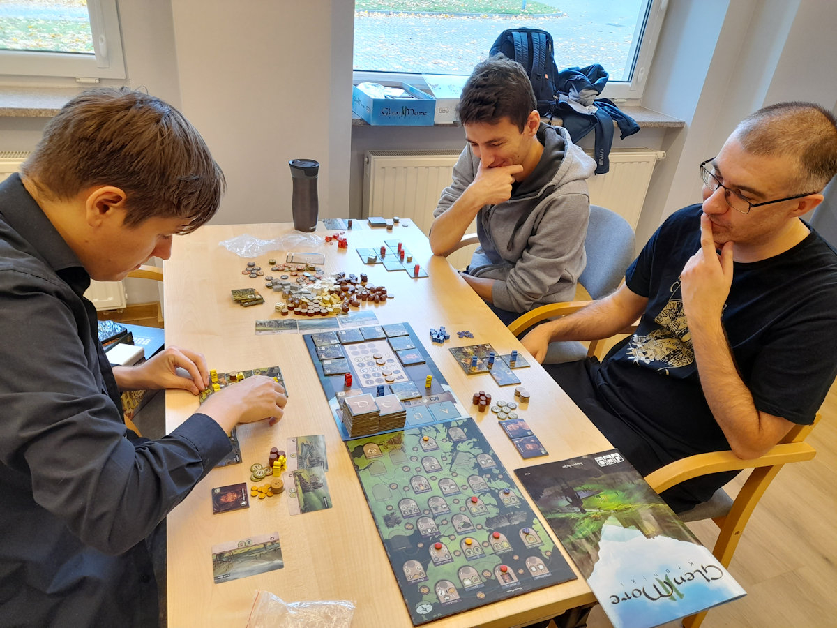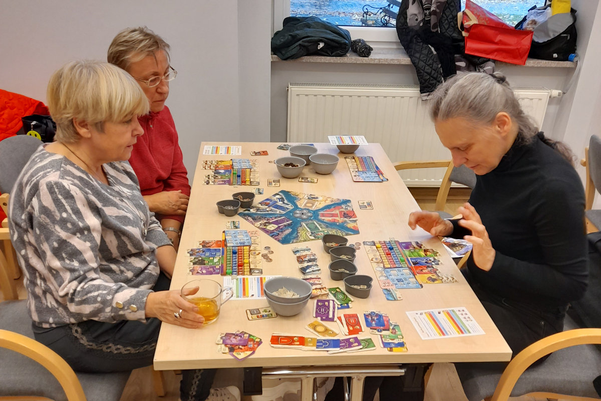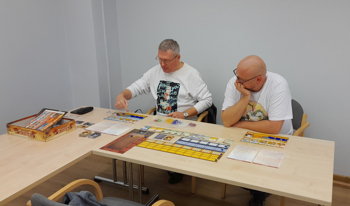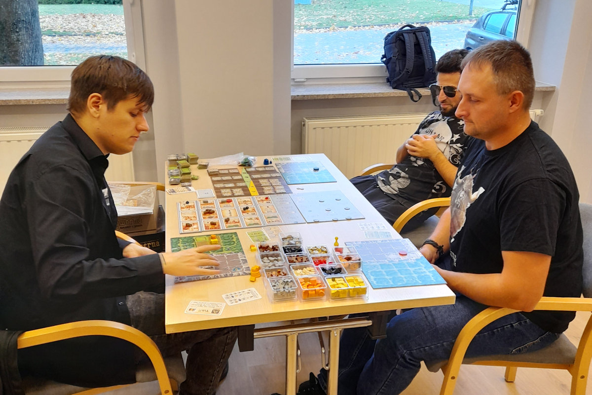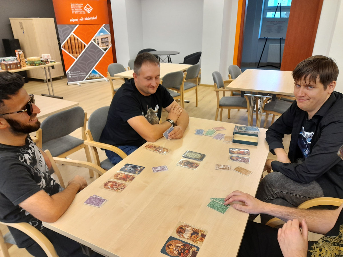 W sobotę odbyło się kolejne spotkanie Klubu Gier Planszowych. Na stołach pojawiły się gry ekonomiczne, strategiczne, W sobotę odbyło się kolejne spotkanie Klubu Gier Planszowych. Na stołach pojawiły się gry ekonomiczne, strategiczne, przygodowe, licytacyjne oraz – po raz pierwszy – narracyjne z dedukcją i ukrytymi rolami. Spotkanie upłynęło w atmosferze rywalizacji i wspólnej zabawy. Nie zabrakło okazji do poznania nowych tytułów i wymiany planszówkowych doświadczeń. Dziękujemy wszystkim za udział i zapraszamy na następne spotkanie w listopadzie!