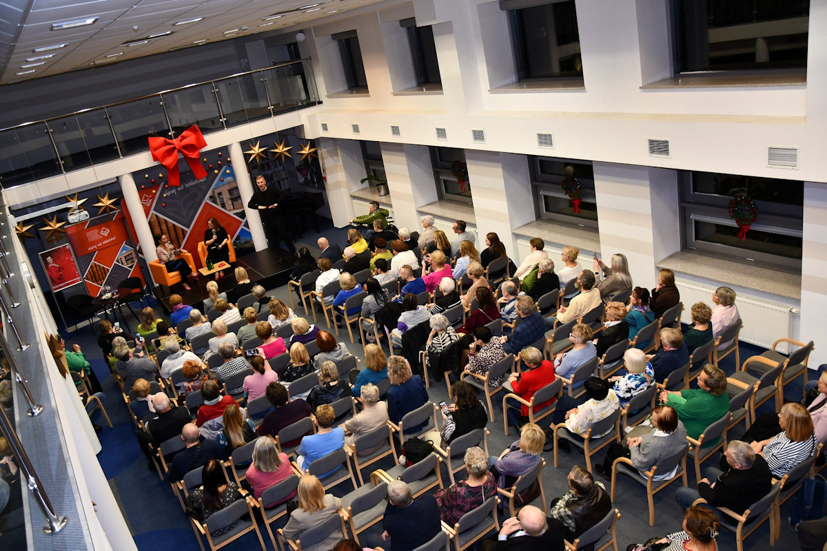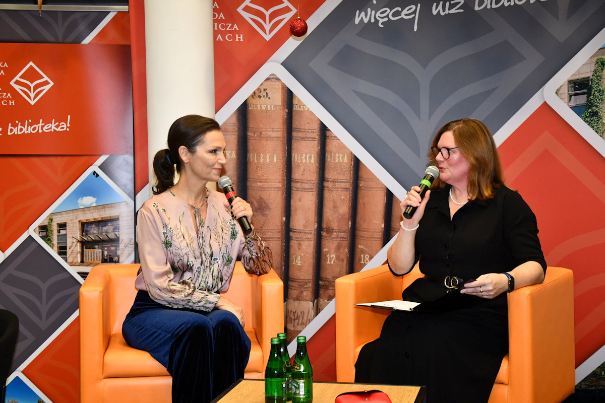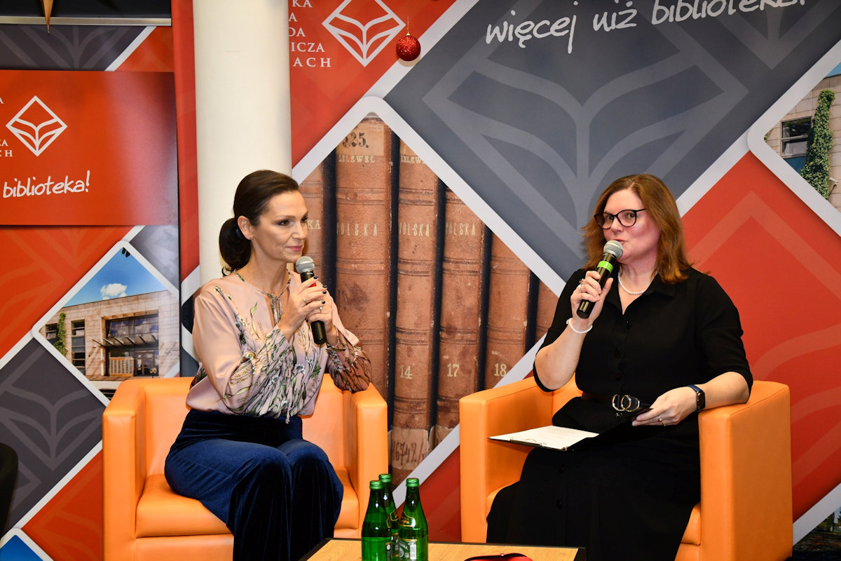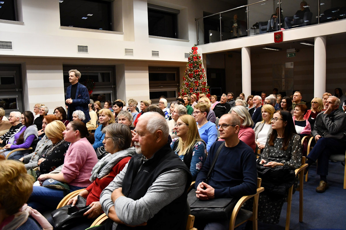 W grudniowy wieczór Czytelnia Ogólna w Wojewódzkiej Bibliotece Publicznej im. Witolda Gombrowicza w Kielcach wypełniła się niemal po brzegi – blisko 150 osób przyszło, by spotkać się z Olgą Bończyk, aktorką i wokalistką o niezwykle ciepłej, magnetycznej osobowości. Świąteczna choinka, migoczące lampki i zimowe dekoracje sprawiły, że od pierwszej chwili czuło się atmosferę oczekiwania, serdeczności i wyjątkowej, grudniowej magii.