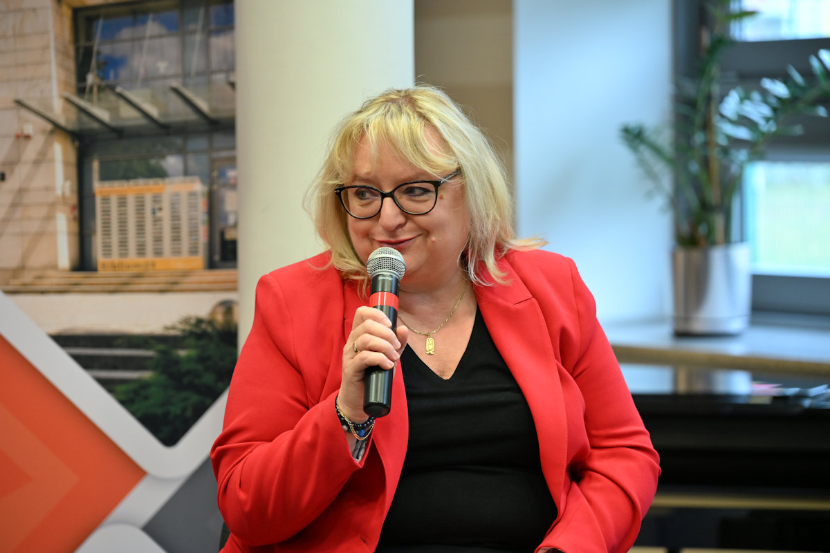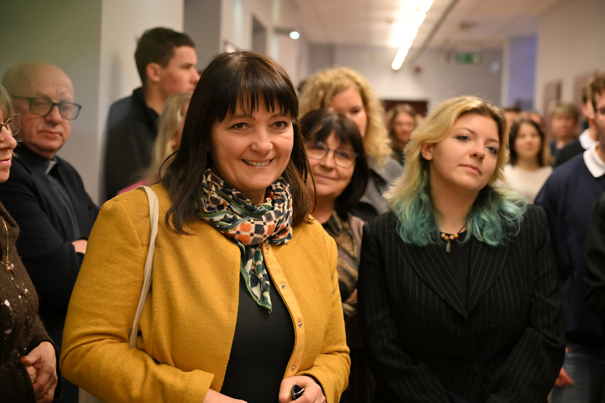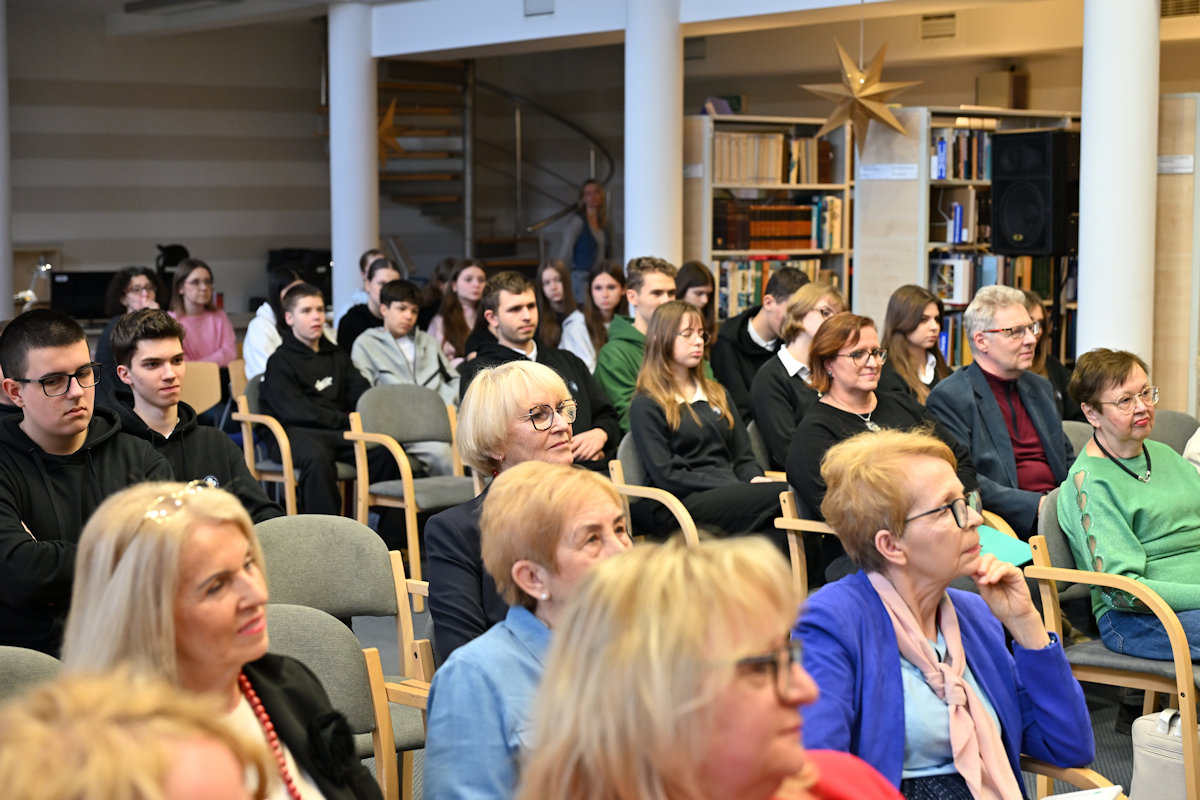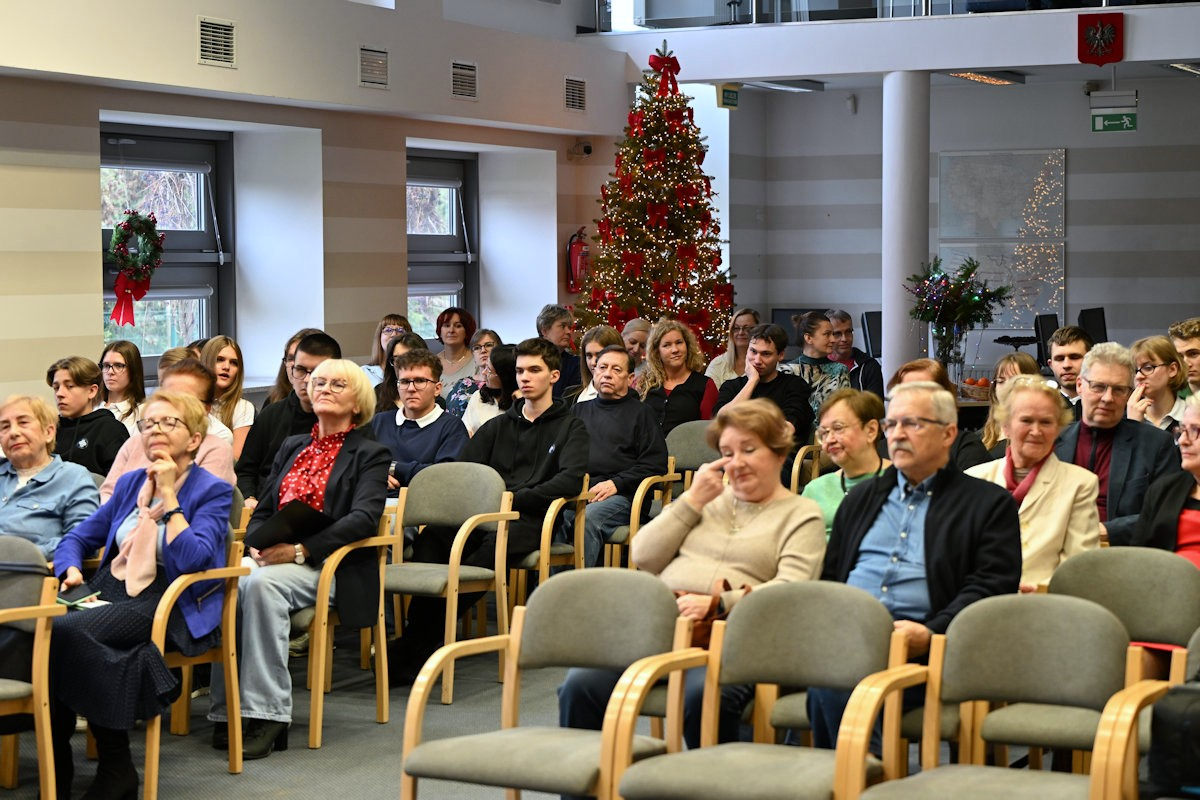 W grudniowy wieczór Czytelnia Ogólna w Wojewódzkiej Bibliotece Publicznej im. Witolda Gombrowicza w Kielcach wypełniła się niemal po brzegi – blisko 150 osób przyszło, by spotkać się z Olgą Bończyk, aktorką i wokalistką o niezwykle ciepłej, magnetycznej osobowości. Świąteczna choinka, migoczące lampki i zimowe dekoracje sprawiły, że od pierwszej chwili czuło się atmosferę oczekiwania, serdeczności i wyjątkowej, grudniowej magii.