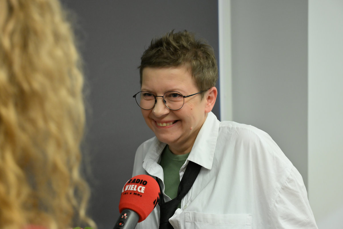 Spotkanie poprowadziła Magdalena Brzezińska, tworząc przestrzeń do swobodnej, pełnej uważności rozmowy. O dostępność wydarzenia zadbał Bartłomiej Gieras, tłumacząc całość spotkania na Polski Język Migowy, dzięki czemu każdy uczestnik mógł w pełni cieszyć się tym wieczorem. Olga Bończyk z ogromną wrażliwością opowiadała o swojej artystycznej drodze – o pierwszych muzycznych krokach, o marzeniach, które z czasem stały się rzeczywistością, oraz o momentach, które na trwałe ukształtowały jej twórczą wrażliwość. Wspominała dom rodzinny, pełen spokoju i miłości, mający ogromny wpływ na jej życie i sztukę.