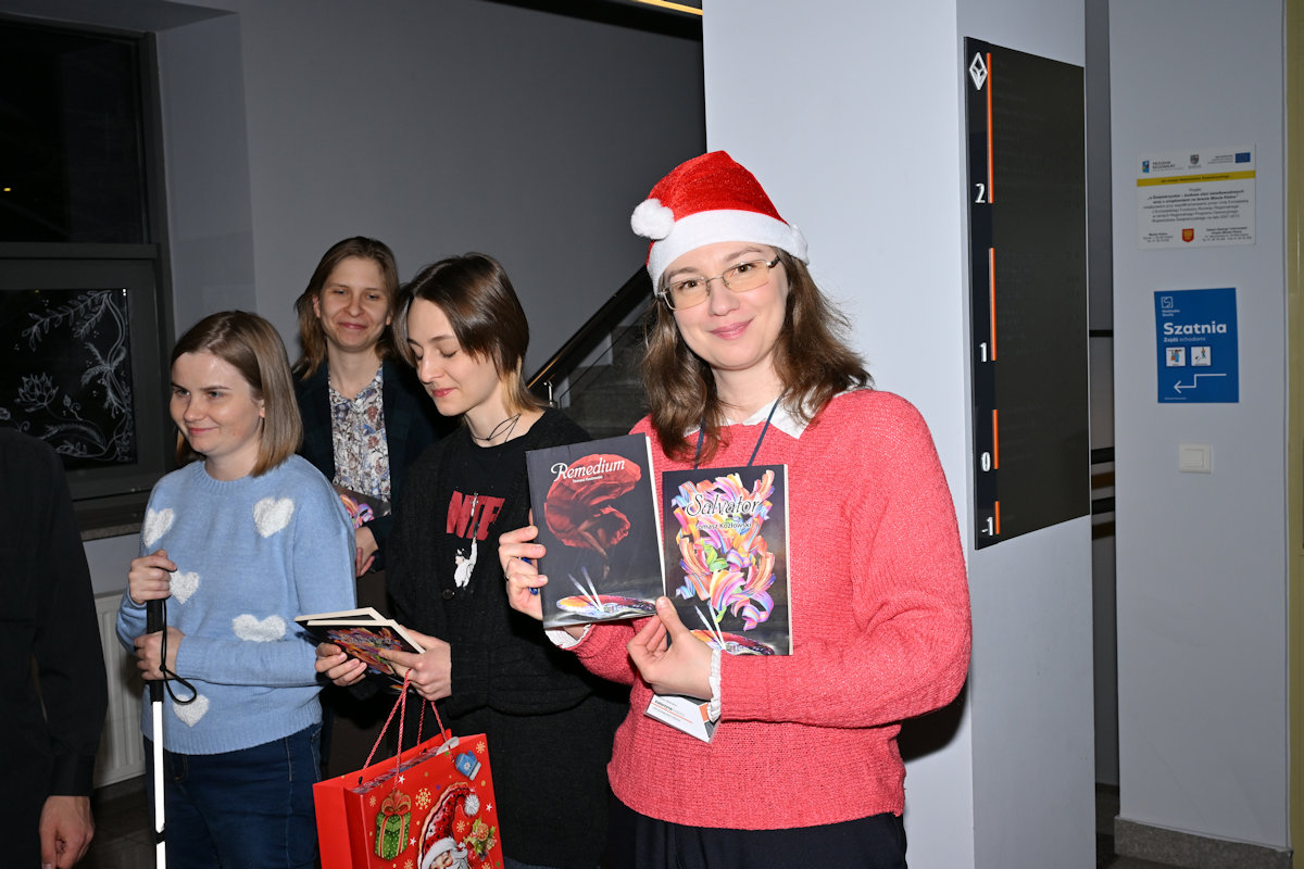 Zajęcia upłynęły w świątecznej atmosferze. Miłośnicy pisarstwa otrzymali bożonarodzeniowe upominki, które umilą im chwile przy wigilijnym stole. Nie mogło również zabraknąć serdecznych życzeń - zarówno na Święta, jak i zbliżający się Nowy Rok.