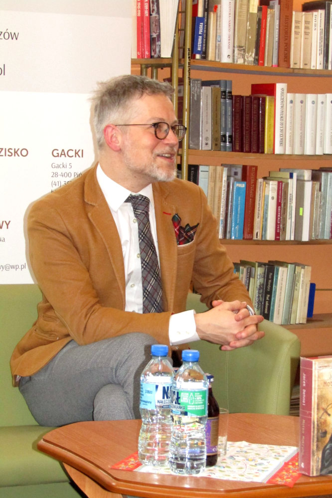 Pan Jacek opowiedział pińczowskim czytelnikom o swoich książkach. Publiczność szczególnie była zainteresowana "Lalą", która rozgrywa się w Lisowie leżącym niedaleko Morawicy. Jednym z tematów, który najbardziej zainteresował przybyłych na spotkanie czytelników był warsztat pisarski Jacka Dehnela. Pisarz odniósł się także do aktualnych wydarzeń społecznych i politycznych. Nie zabrakło wątku wojny w Ukrainie i ukraińskich pisarzy znajdujących schronienie w naszym kraju. Zgromadzona publiczność miała także niepowtarzalną możliwość wysłuchania fragmentu powieści "Lala", czytanej przez samego autora. Spotkanie było niezwykle udane, o czym świadczą liczne pytania do pana Jacka od publiczności oraz gorące brawa dla autora na zakończenie spotkania.
