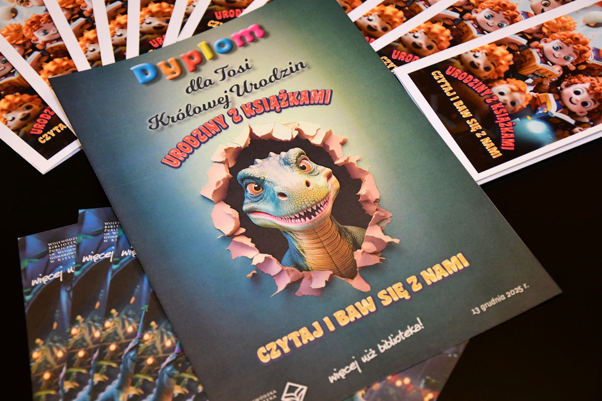 Ostatnie w tym roku Urodziny w Bibliotece przeniosły uczestników w fascynujący świat dinozaurów. Swoje 4. urodziny świętowała Tosia, która wraz z przyjaciółmi zamieniła się w prawdziwych małych paleontologów. Dzieci tropiły ślady dinozaurów, tworzyły kolorowe prace plastyczne z prehistorycznymi gadami oraz brały udział w pełnych emocji grach i zabawach tematycznych. Radości, śmiechu i dobrej zabawy nie brakowało ani przez chwilę.