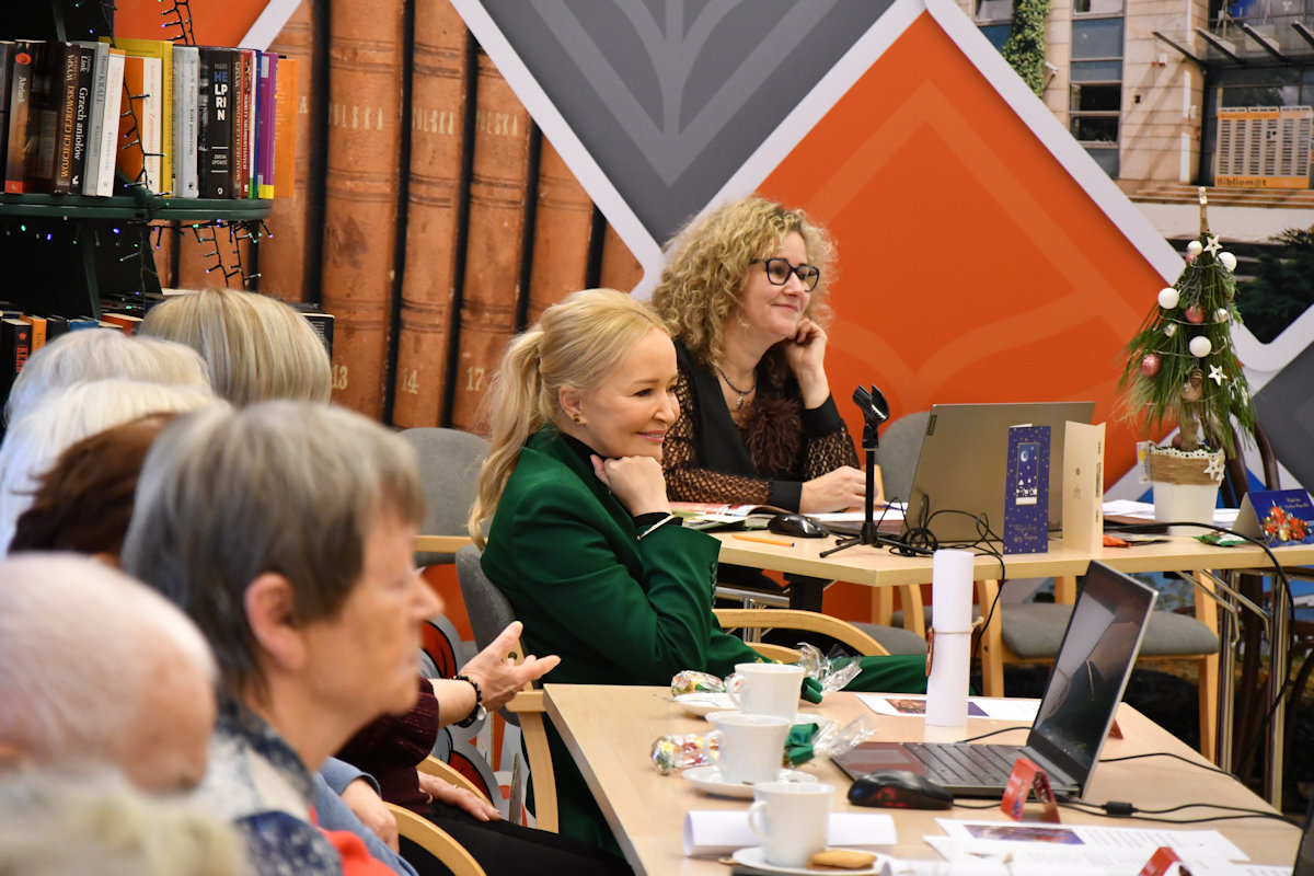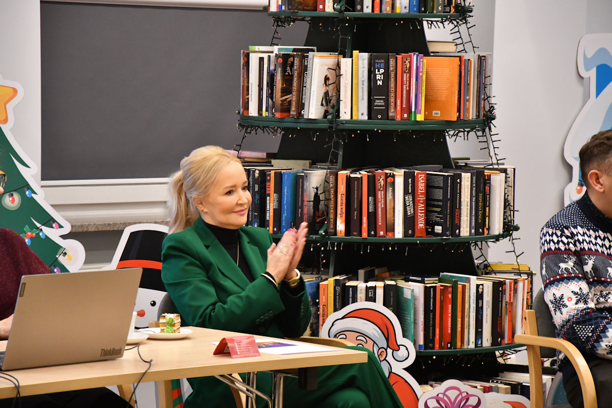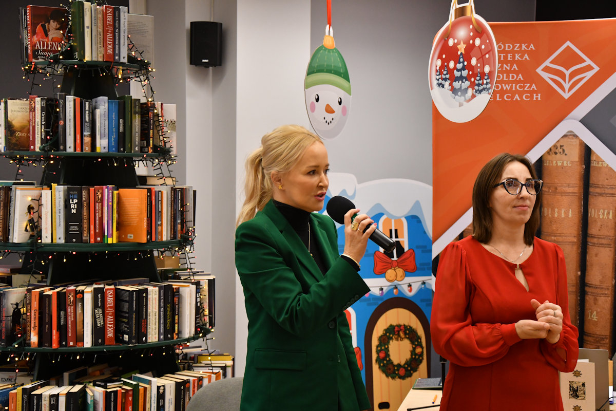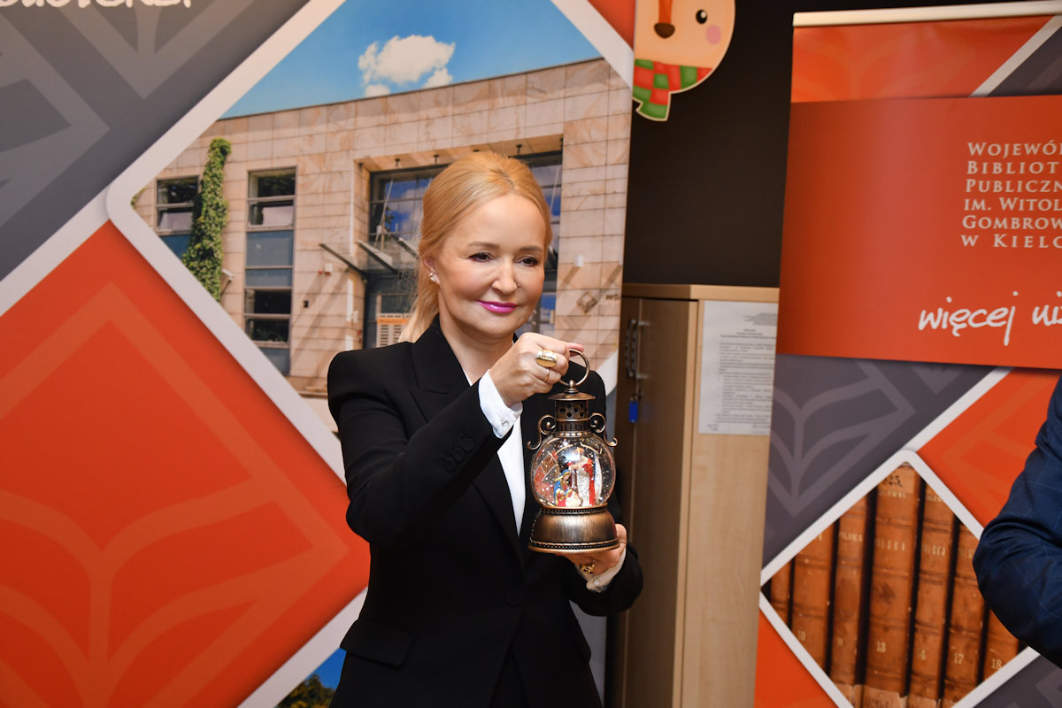 W grudniowy wieczór Czytelnia Ogólna w Wojewódzkiej Bibliotece Publicznej im. Witolda Gombrowicza w Kielcach wypełniła się niemal po brzegi – blisko 150 osób przyszło, by spotkać się z Olgą Bończyk, aktorką i wokalistką o niezwykle ciepłej, magnetycznej osobowości. Świąteczna choinka, migoczące lampki i zimowe dekoracje sprawiły, że od pierwszej chwili czuło się atmosferę oczekiwania, serdeczności i wyjątkowej, grudniowej magii.