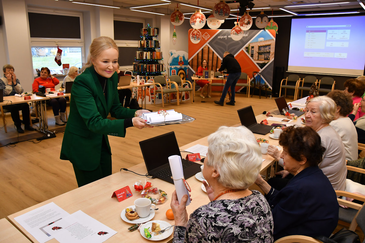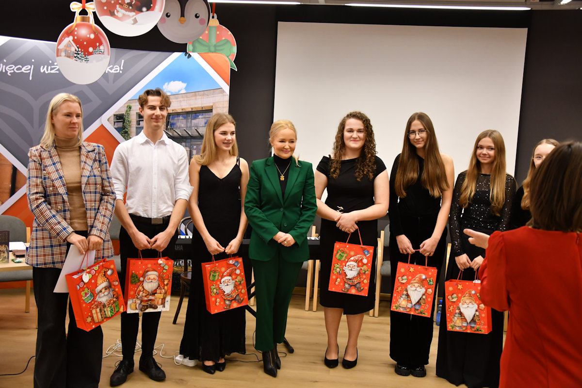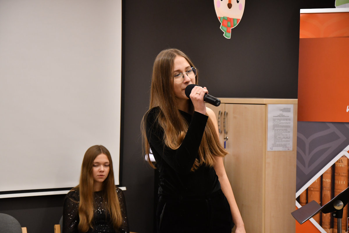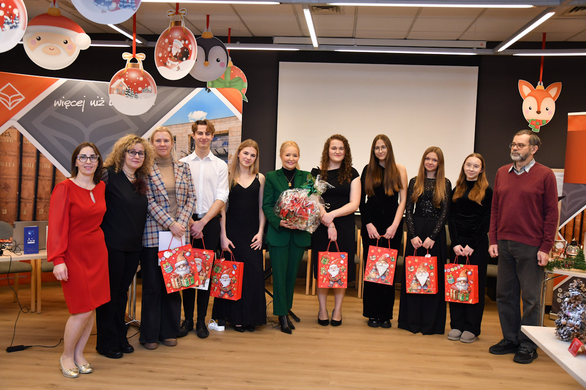Dzisiejsze świąteczne warsztaty komputerowe dla seniorów, które odbyły się w naszej bibliotece pod hasłem „Magia Świąt Bożego Narodzenia”, wypełniły przestrzeń wyjątkową atmosferą radości, wzruszeń i wspólnego przeżywania nadchodzących świąt. Prawdziwie świąteczny nastrój poczuliśmy dzięki uczniom Zespołu Państwowych Szkół Muzycznych im. L. Różyckiego, którzy wraz z opiekunem grupy, panią dyrektor ds. spraw artystycznych Agnieszką Wiechą, zaszczycili nas swoją obecnością. Pięknie wykonane polskie kolędy poruszyły serca uczestników i wprowadziły wszystkich w magiczny, bożonarodzeniowy klimat.