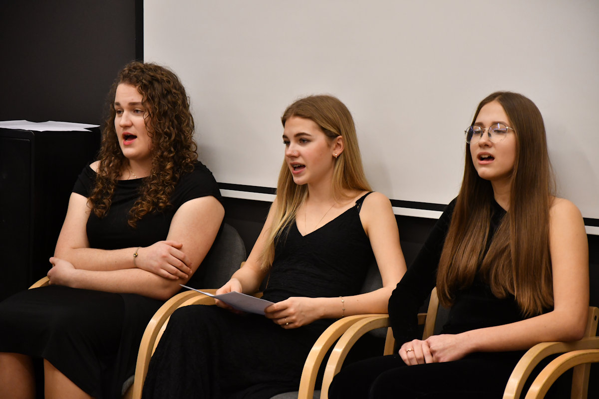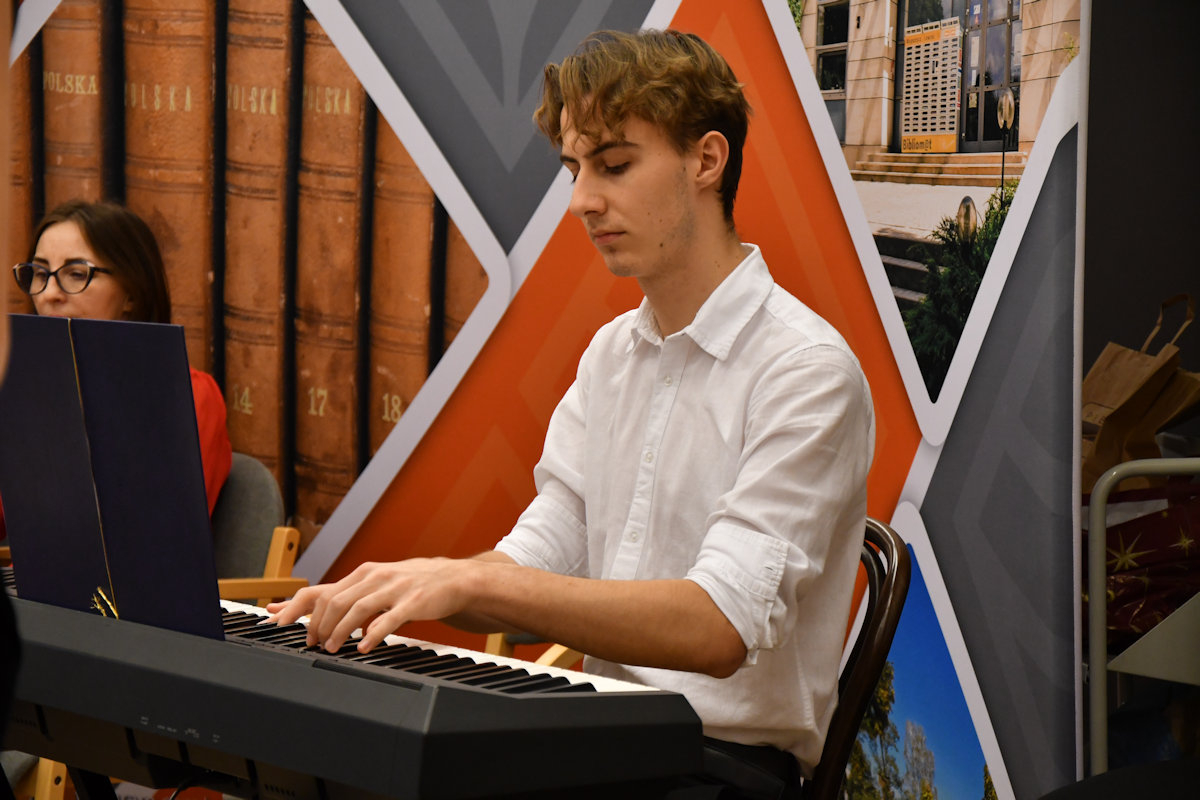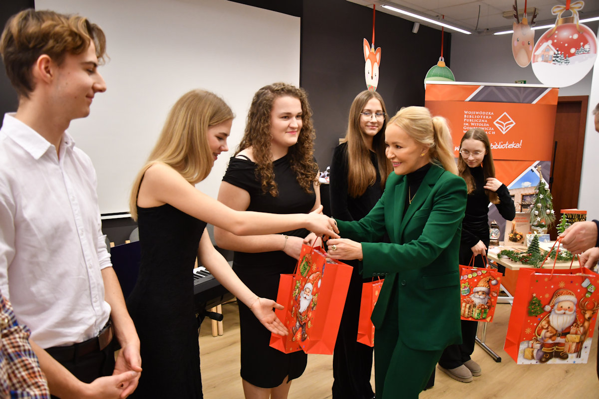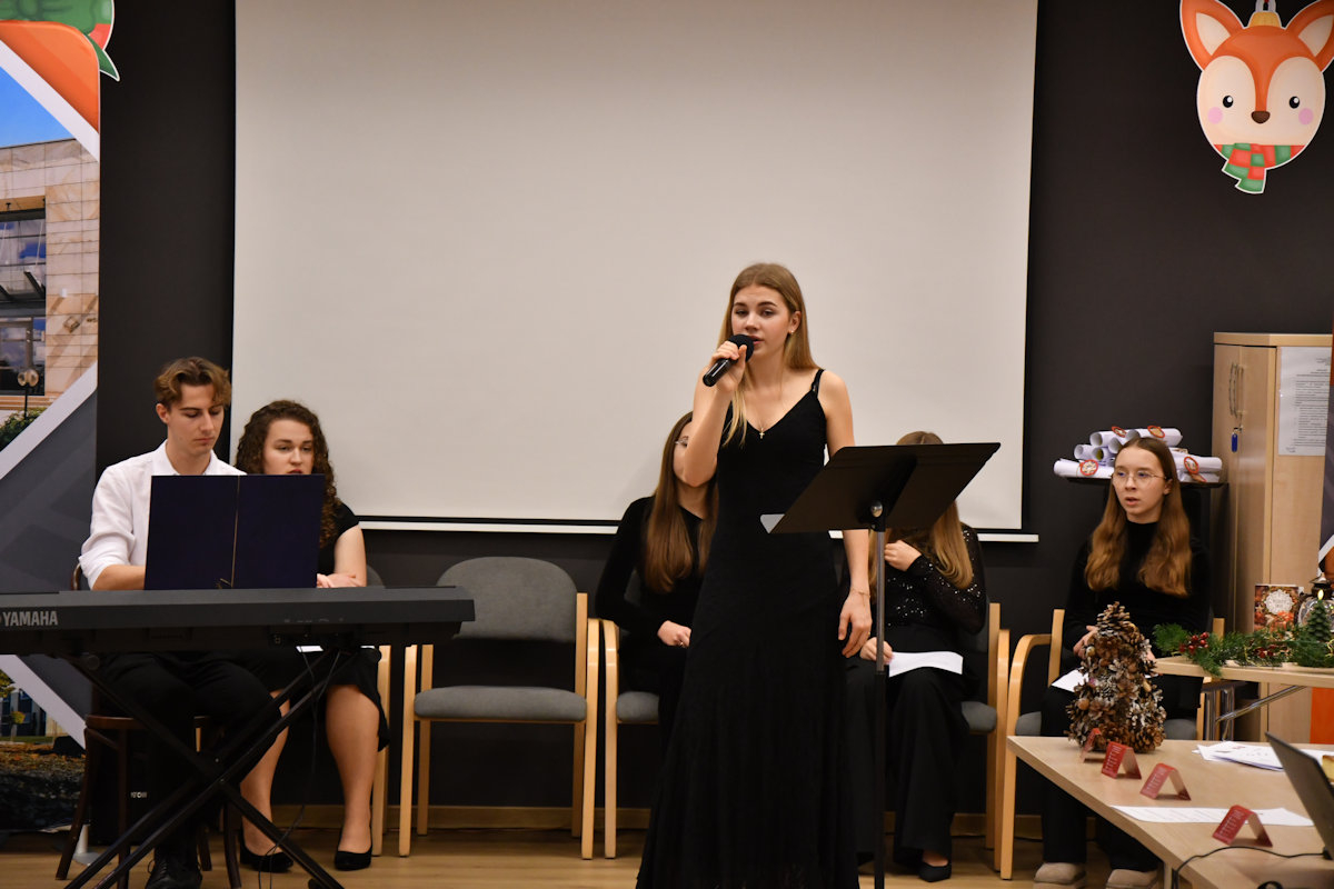 Dzisiejsze świąteczne warsztaty komputerowe dla seniorów, które odbyły się w naszej bibliotece pod hasłem „Magia Świąt Bożego Narodzenia”, wypełniły przestrzeń wyjątkową atmosferą radości, wzruszeń i wspólnego przeżywania nadchodzących świąt. Prawdziwie świąteczny nastrój poczuliśmy dzięki uczniom Zespołu Państwowych Szkół Muzycznych im. L. Różyckiego, którzy wraz z opiekunem grupy, panią dyrektor ds. spraw artystycznych Agnieszką Wiechą, zaszczycili nas swoją obecnością. Pięknie wykonane polskie kolędy poruszyły serca uczestników i wprowadziły wszystkich w magiczny, bożonarodzeniowy klimat.