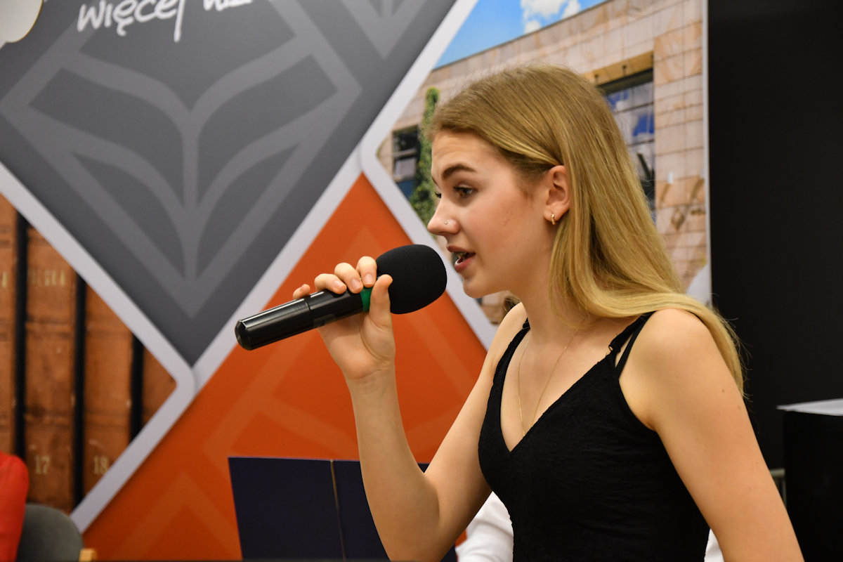 Artystka dzieliła się również refleksjami o swoich piosenkach – traktowanych jak intymny dialog z publicznością. Dzięki nim przekazuje słuchaczom czułość, bliskość i prawdziwe emocje. Opowiadała też o szczęściu, które towarzyszy jej na co dzień, oraz o koncertach, podczas których zabiera widzów w muzyczne podróże pozwalające oderwać się od codzienności. Wieczór minął w atmosferze ciepła, otwartości i życzliwości. Na zakończenie wśród uczestników rozlosowano płytę artystki, którą wręczyła Dyrektor Biblioteki – Pani Agnieszka Kuś.