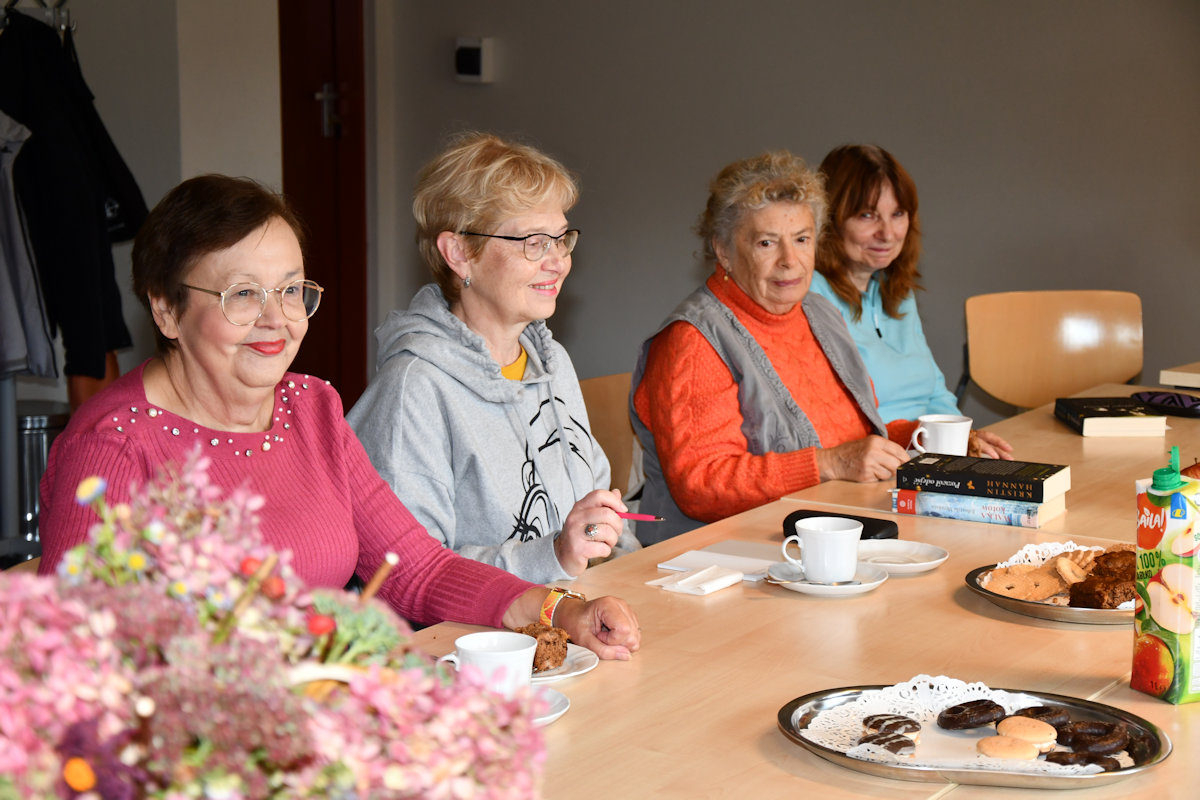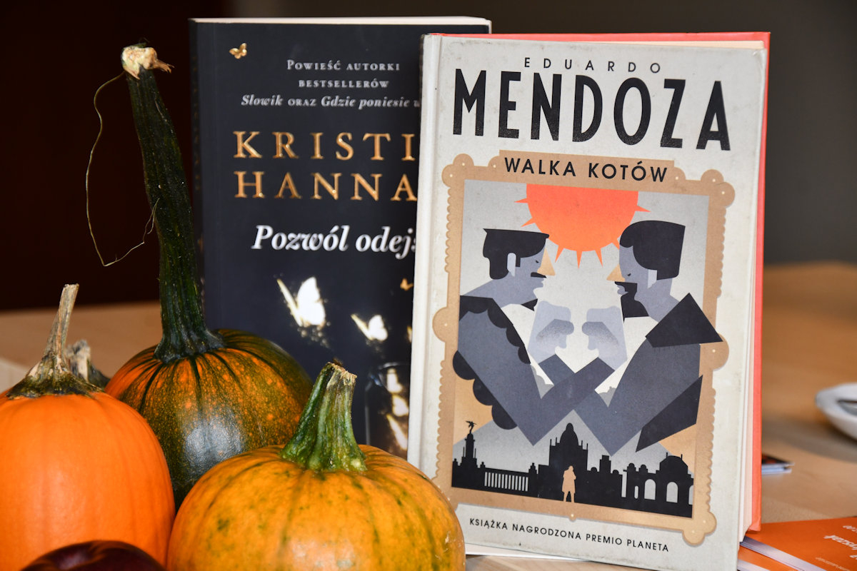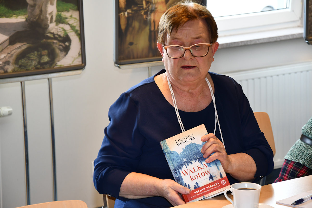 Jesienne spotkania w Dyskusyjnym Klubie Książki rozpoczęliśmy 13 października 2025 r. Omawialiśmy książki: "Pozwól odejść" Kristin Hannah, która jest jedną z najbardziej poczytnych podatek amerykańskich. " Pozwól odejść" to historia, która koncentruje się na emocjonalnych przeżyciach przyjaciółek po śmierci jednej z nich. Odpowiada na pytania jak radzić sobie z żałobą i depresją po stracie najbliższej osoby. Jest wzruszająca i momentami wywołuje w nas smutek, ale daje dużo nadziei i skłania do refleksji nad życiem. Książki Kristin Hannah są zawsze bardzo pozytywnie przyjmowane w naszym klubie. Druga książka " Walka kotów" Eduardo Mendozy, to powieść historyczno - kryminalna, w której znakomity znawca sztuki, Anthony Whitelands, przyjeżdża do Madrytu, by wycenić obraz w kolekcji pewnego arystokraty... . I tu zaczyna się prawdziwa powieść. Romanse, intrygi miłosne, walki wywiadówki, polityczne rozgrywki. Powieść pełna niesamowitych zwrotów akcji. Mendoza wprowadza czytelnika w kryminalną intrygę z humorem , a charakterystycznym elementem jest ironiczny żart i nieoczekiwane zwroty akcji. Z ogromną przyjemnością polecamy obie książki na jesienne wieczory. Spotkanie przebiegało w serdecznej i ciepłej atmosferze, bardzo dobrze rozmawiało nam się o książkach. Pod koniec spotkania na Panie czekały niespodzianki: nowy numer kwartalnika " Świętokrzyskie", " Poezje" Jana Kochanowskiego w podziękowaniu za udział w Narodowym Czytaniu, a także zaproszenia na spotkania autorskie z Izabelą Trojanowską i Joanną Kuciel-Frydryszak. Czekamy na Was na spotkaniach w Bibliotece i zapraszamy na jesienne wydarzenia.