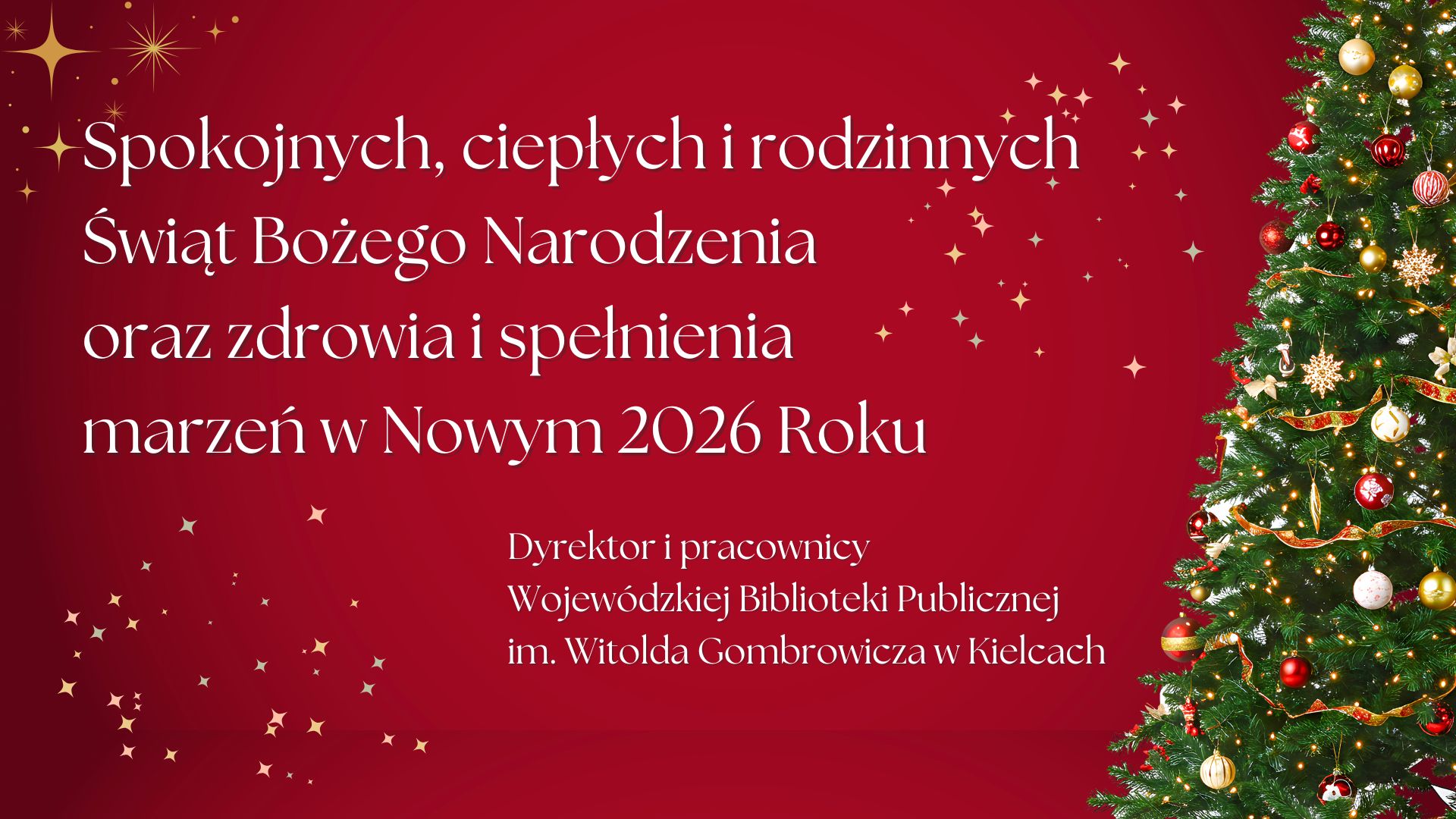 Wesołych Świąt i szczęśliwego Nowego Roku życzą Dyrektor i Pracownicy Wojewódzkiej Biblioteki Publicznej im. Witolda Gombrowicza w Kielcach